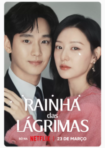 “Rainha das Lágrimas” (Queen of Tears) é um drama coreano que acompanha a vida de Hong Hae In (interpretada por Kim Ji Won), uma herdeira de uma grande empresa que passa por inúmeras provações com problemas no casamento e um importante problema de saúde. Hae In, casada com Baek Hyun Woo (interpretado por Kim Soo Hyun), um advogado talentoso e inteligente, que dedica-se a resolver os mistérios e as conspirações que cercam sua esposa e a empresa da família. Porém, a relação deles é complexa e marcada, então, por amor e conflitos, especialmente devido às pressões externas e às interferências da família dela nos assuntos conjugais e de trabalho.