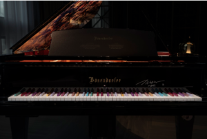 Uma curiosidade recente envolve o rapper Drake, que adquiriu um Bösendorfer 380VC personalizado. Criado em colaboração com o designer Ferris Rafauli e o artista Takashi Murakami e conhecido por seu estilo “Superflat”, possui teclas coloridas e desenhos de caveiras na tampa interna, destacando-se como uma peça única e extravagante no mundo da música.