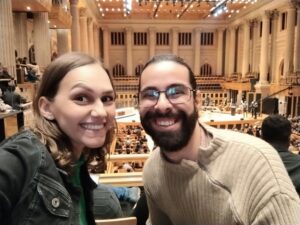 Leo e eu na final da gravação do Programa Prelúdio em 2023, na Sala São Paulo.